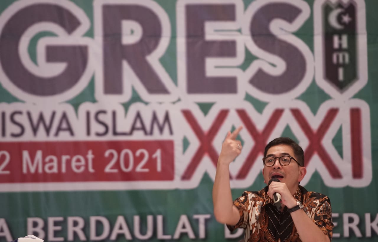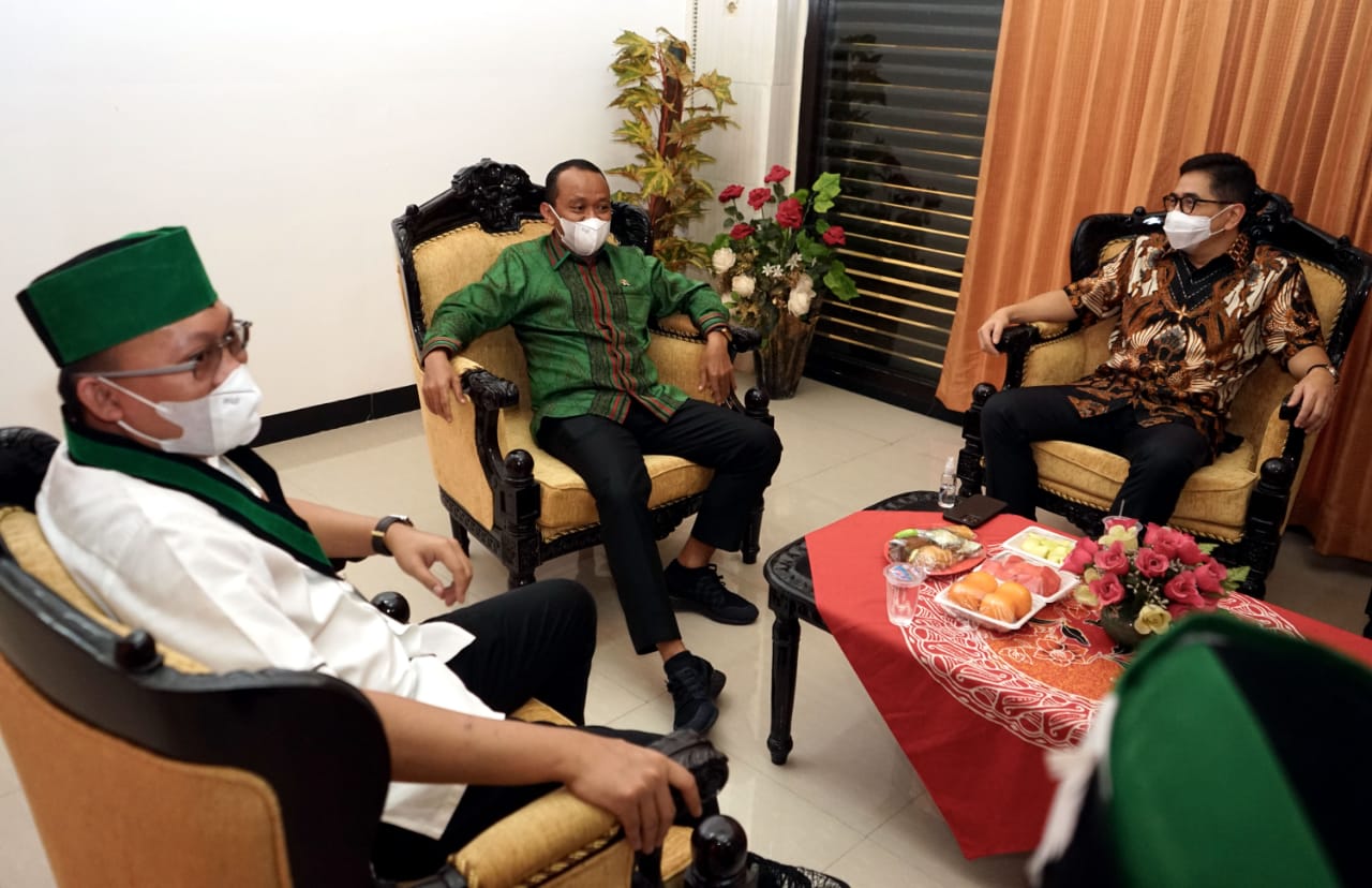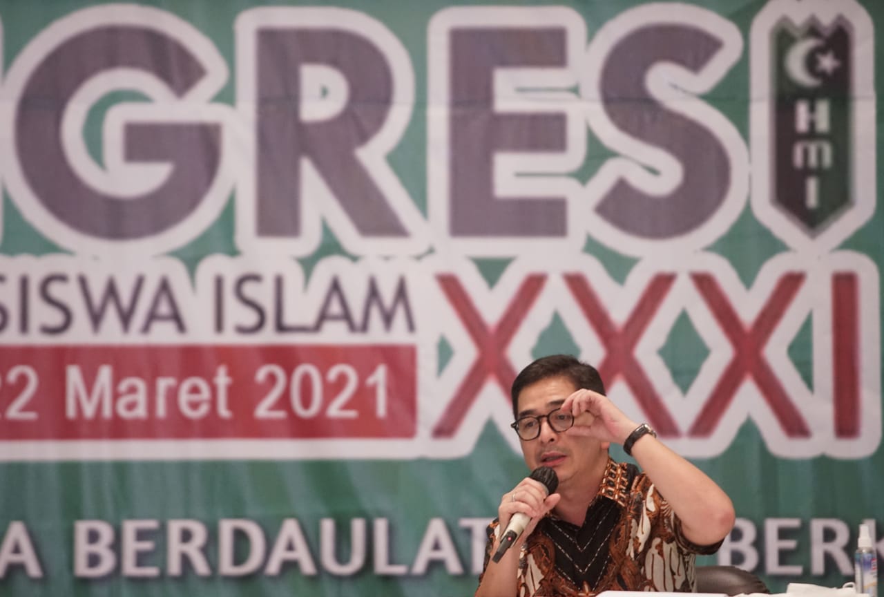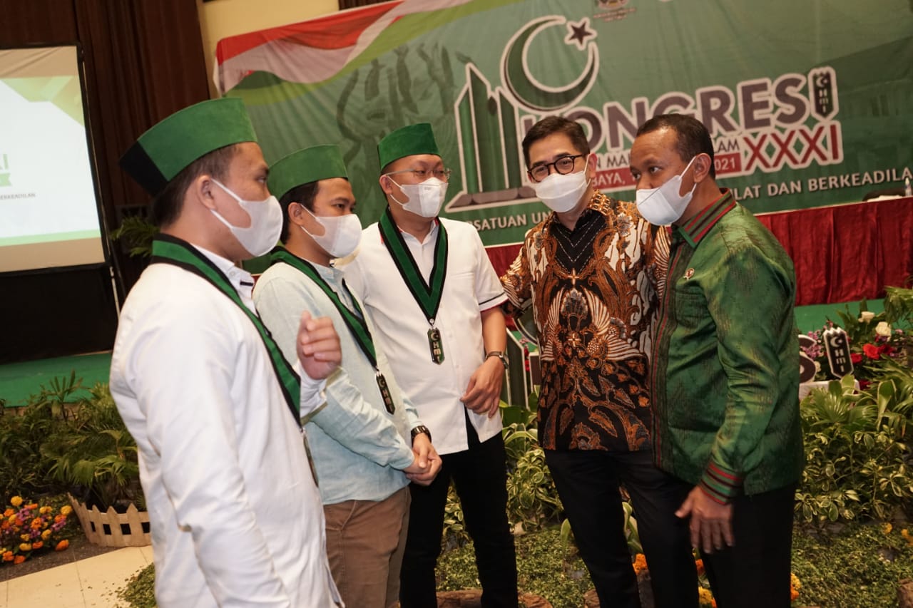 Kepala Badan Koordinasi Penanaman Modal (BKPM) Bahlil Lahadalia (kiri) bersama Presiden Direktur Indika Energy Tbk Arsjad Rasjid (kanan) memberikan materi ketika menjadi pembicara pada seminar bertema “Investasi Dalam Roadmap Kebangkitan dan Kedaulatan Ekonomi Nasional Pasca Pandemi COVID-19” di Surabaya, Jawa Timur, Kamis (18/3/2020). Dalam seminar yang digelar pada acara Kongres XXXI Himpunan Mahasiswa Islam (HMI) tersebut Arsjad Rasjid dan Bahlil Lahadalia mengajak para kader HMI menjadi pengusaha untuk membantu pemerintah menciptakan lapangan kerja.